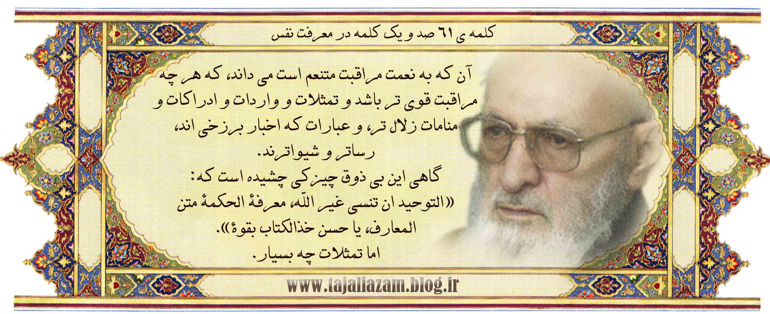 آن که لااقل در صنعت یک چاقو، عقل خود را بکار برد که تیغه و دسته آن هر یک به وفق دیگرى ساخته شده است، اذعان کند که نظام هستى را حیات و علم و قدرت و تدبیر و اراده اداره مى کند که از هر نوع یعنى مذکر و یکى مؤنث به وفق یکدیگر آفریده است.