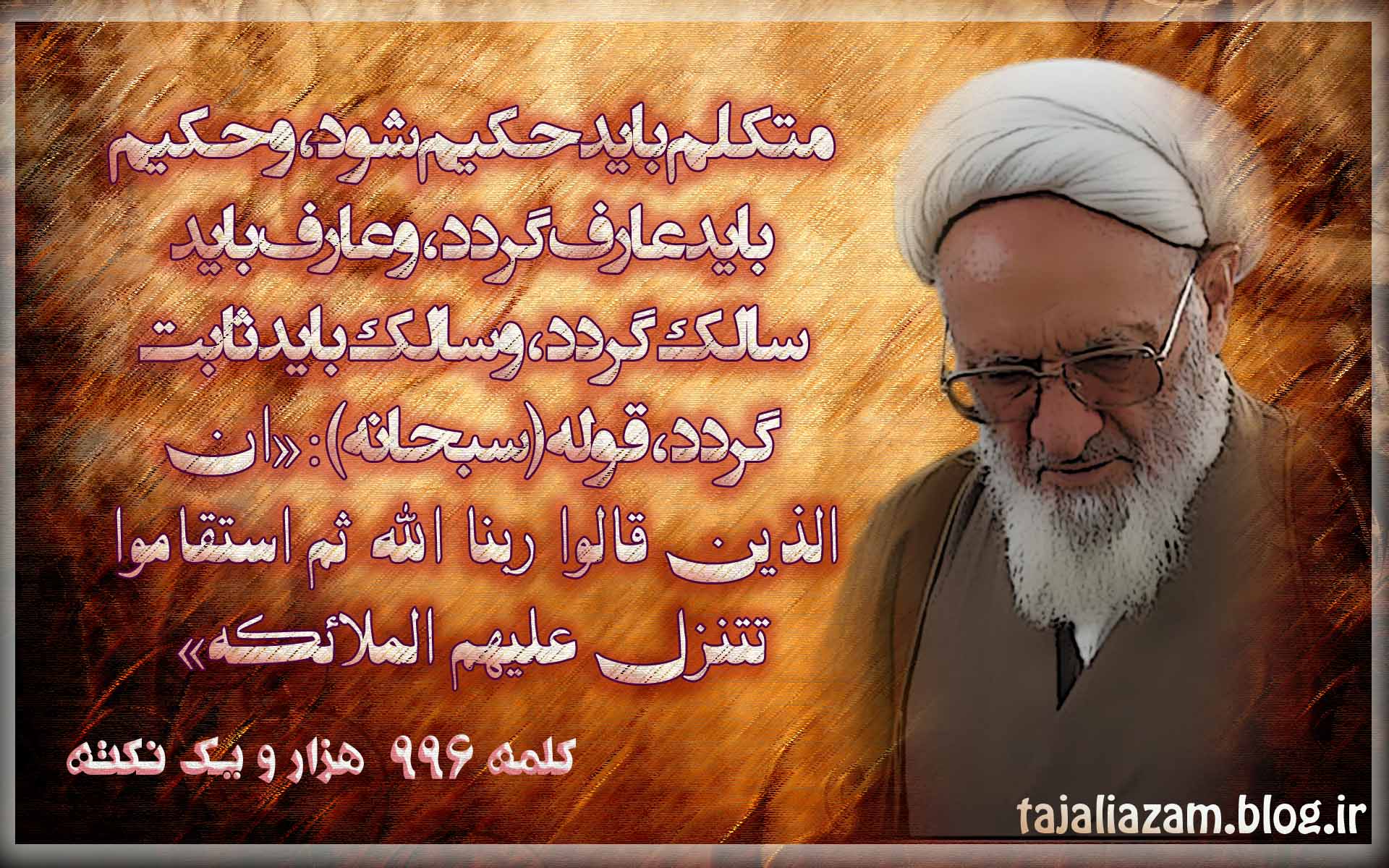 قرآن صورت کتبیّه انسان کامل- اعنى حقیقت محمّدیه صلّى اللّه علیه و آله و سلم است ببین تا چه اندازه بدان قرب دارى. رسول اللّه صلّى اللّه علیه و آله و سلم فرمود: انّ هذا القرآن مأدبة اللّه بنگر بهرهات از این مأدبه تا چه حد است.